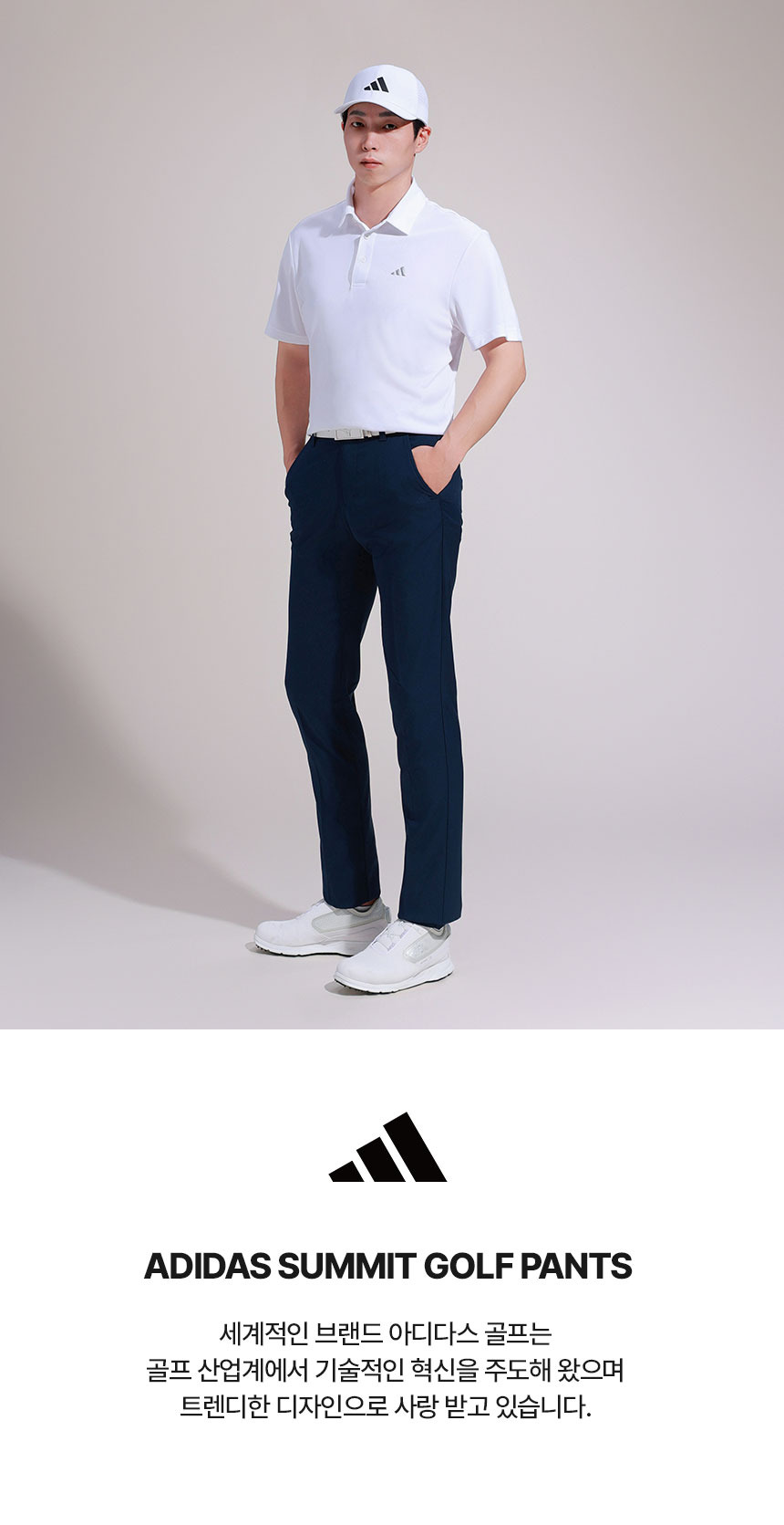 - 아디다스 특유의 세련된 디자인이 돋보입니다. 슬림 핏으로 깔끔한 실루엣을 연출할 수 있으며, 다양한 스타일에 잘 어울려 골프장에서뿐만 아니라 일상에서도 활용 가능합니다.